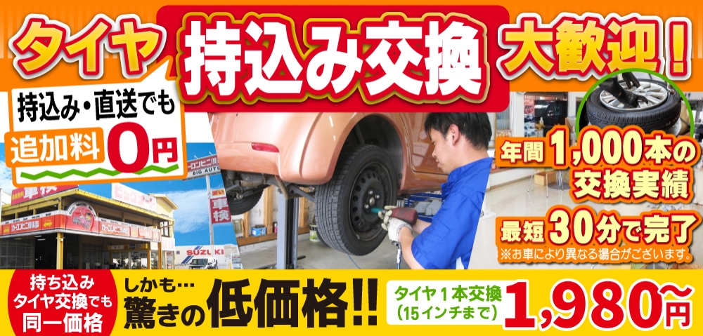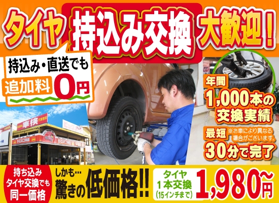 ひたちなか・水戸・那珂・東海でタイヤ交換取付1980円